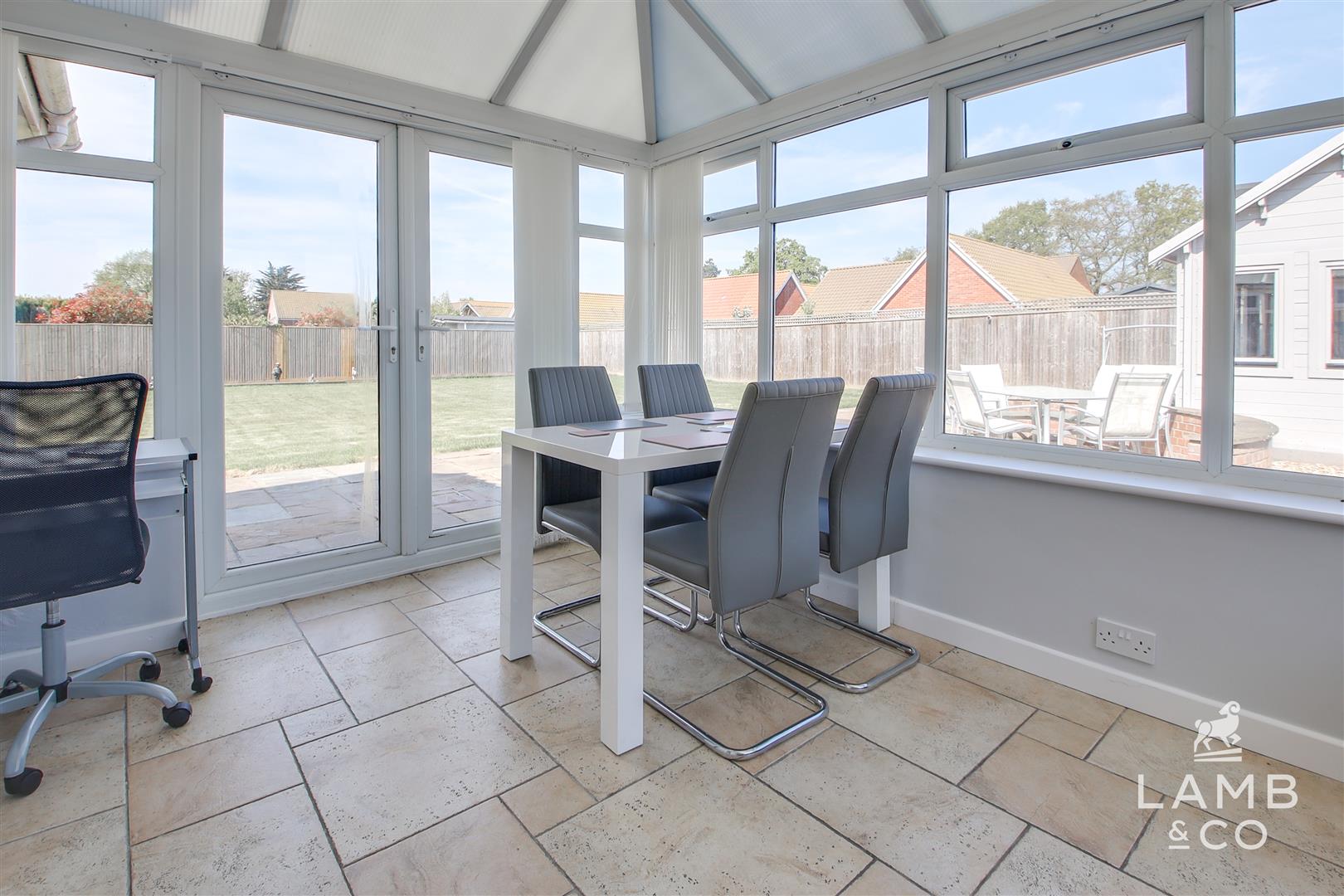 ** DETACHED HOUSE PLUS SEPARATE TWO BEDROOM BUNGALOW & TWO FURTHER OUTBUILDINGS ** Discover luxury and flexibility in the heart of Great Oakley with this exceptional four-bedroom detached home. Designed for modern family living, it features spacious interiors, high ceilings, and abundant natural light throughout. At its heart, the sleek kitchen shines with a central island, teppanyaki grill, and bespoke cabinetry.