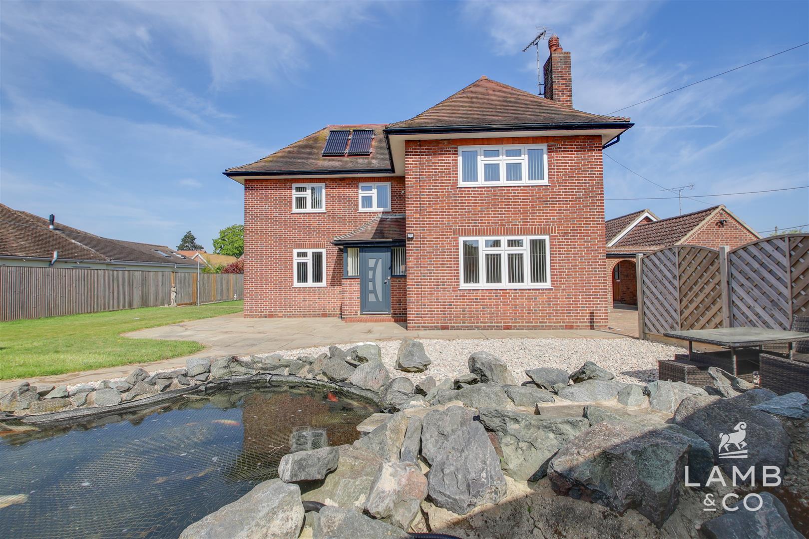 Eco-conscious upgrades include a brand-new air source heat pump (10-year guarantee), solar thermal system, and acoustic double glazing. Outside, enjoy electric gates, ample parking, a detached garage, and beautifully landscaped gardens with a koi pond — an idyllic setting for relaxing or entertaining.