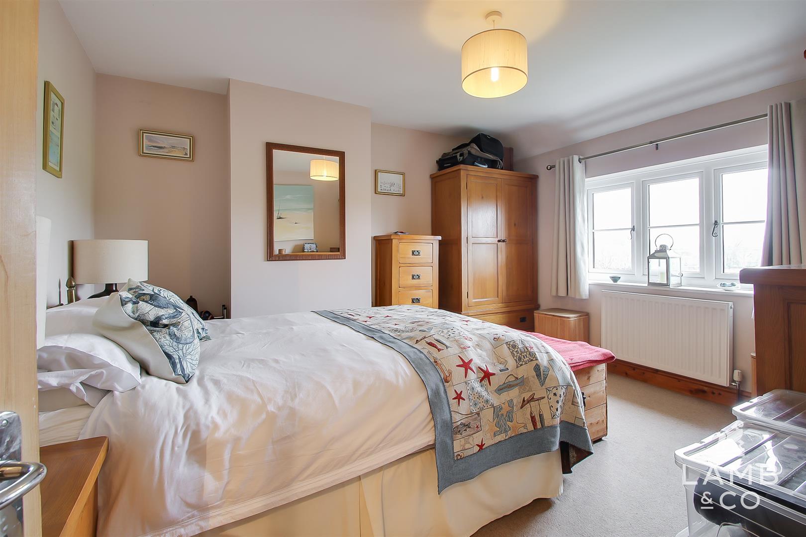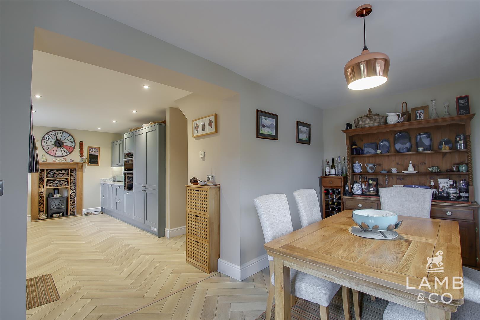A picturesque family home set within the gentle folds of the Tendring countryside. With open views to the front and rear, the setting feels calm and unspoilt, framing everyday life with open skies and changing seasons. Inside, the home is warm and welcoming, with cosy log burners in both the kitchen/dining room and the living room, and spaces designed for family connection. The popular Bicycle Bar & Restaurant sits just a short stroll away, adding a touch of indulgence to the area.